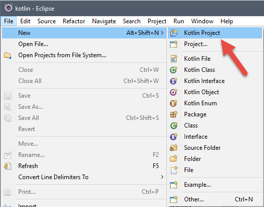 Sélectionnez File -> New -> Kotlin Project pour démarrer.
