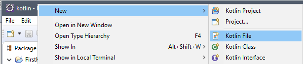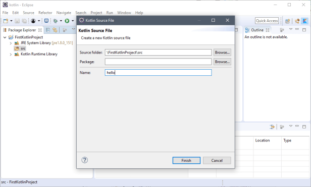 Si vous omettez l'extension ".kt" dans le nom du fichier, ne vous inquiétez pas, Eclipse l'ajoutera automatiquement…